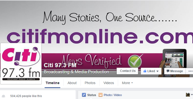 Ghana’s most influential radio station, Citi FM, is thanking its fans for helping it achieve a milestone on social media page Facebook, by giving the station over half a million likes.